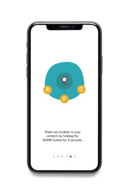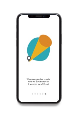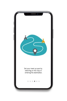 The logomark depicts two people holding hands, which conveys an innate senese of trust, safety, and familiarity. Three points are visually created by an overaly of colors, which communicates two separate locations narrowed down into one safe location. The symmetrical and circular forms signify the ease, reliability, and friendliness of the user experience.